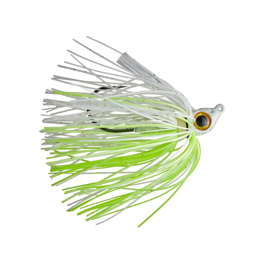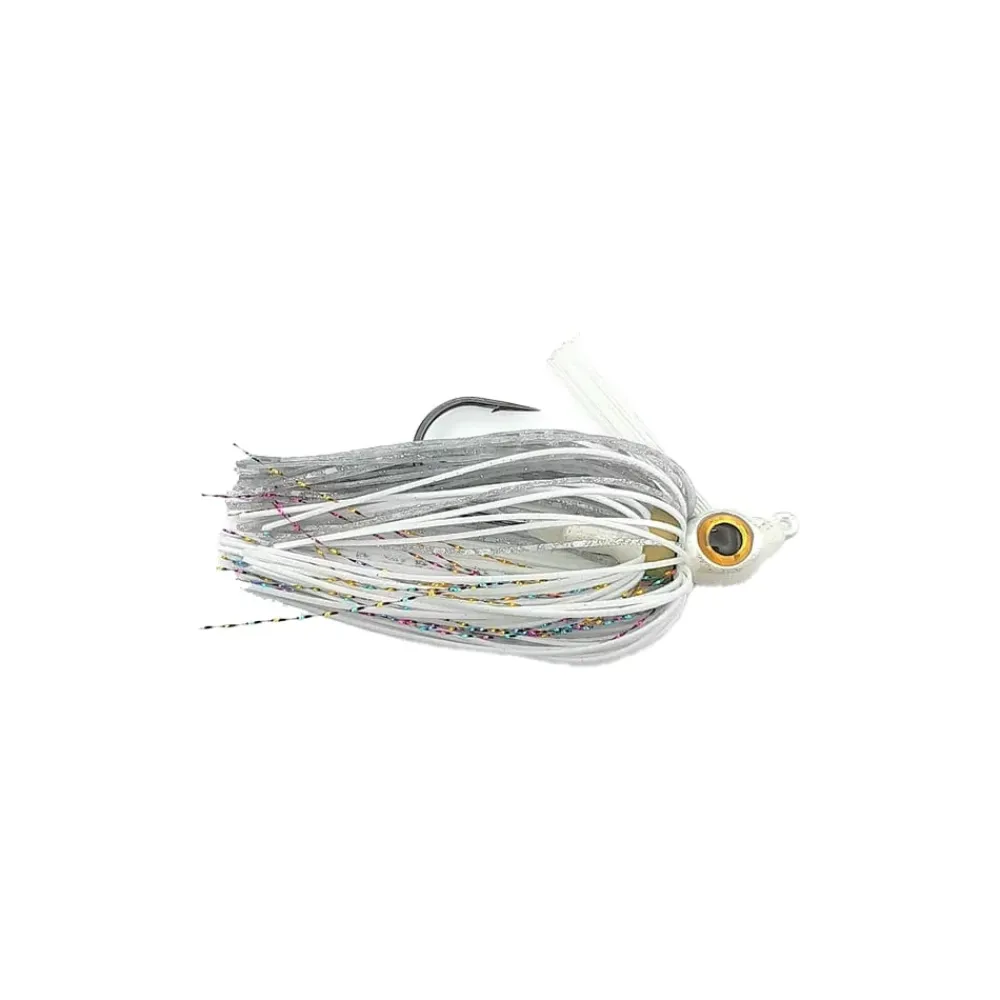Since the launch of our heavy-duty Gorilla Swimjig, customers have often requested a more “northern style” swimjig, and so, the Workingman’s Swimjig was born. This swimjig is ideal for smaller grub or double-tail grub style trailers, or any swimbait in the 2.8” to 4” range. The largest 3d eyes on any swimjig in the category, along with perfectly trimmed skirts and weedguards make the Workingman’s Swimjig a phenomenal tool. The pointed, perfectly keeled head lets you swim this little jig through thick grass and keep it high in the water column. Skirts are wire-tied AND banded. 1/4 Oz and 5/16 Oz sizes. Backed by a 30 Degree small-eye 4/0 BKK Black Nickel.
